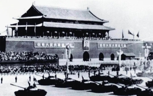 1959年8月22日,凝結(jié)著干部職工心血和汗水的32輛59式坦克,比建廠時計劃進度提前一年交付部隊,經(jīng)過嚴格考核試驗后參加了建國十周年國慶大閱兵。